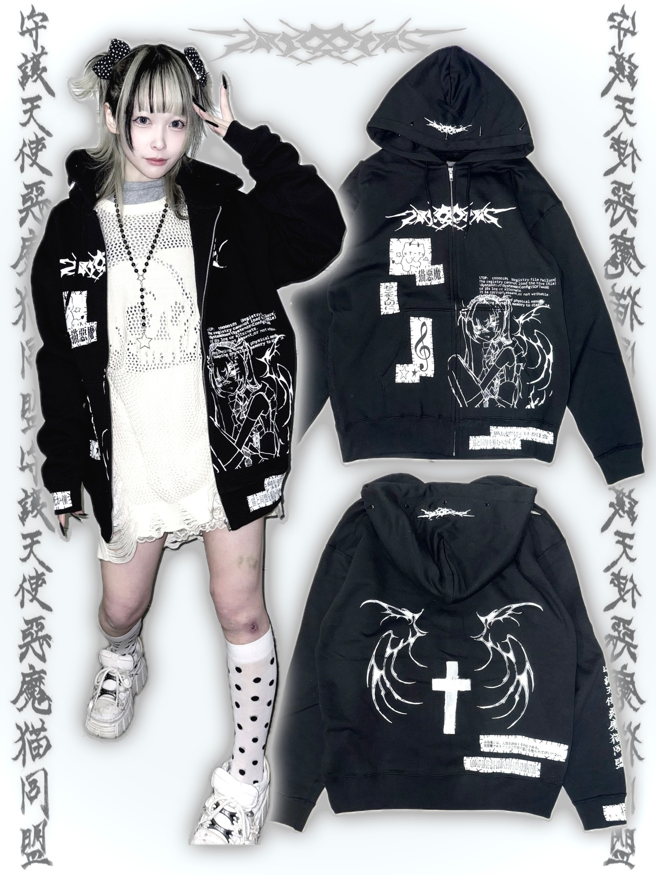 '' 守護天使惡魔猫同盟 '' の文字は筆ペンで書いたものをデータ化して