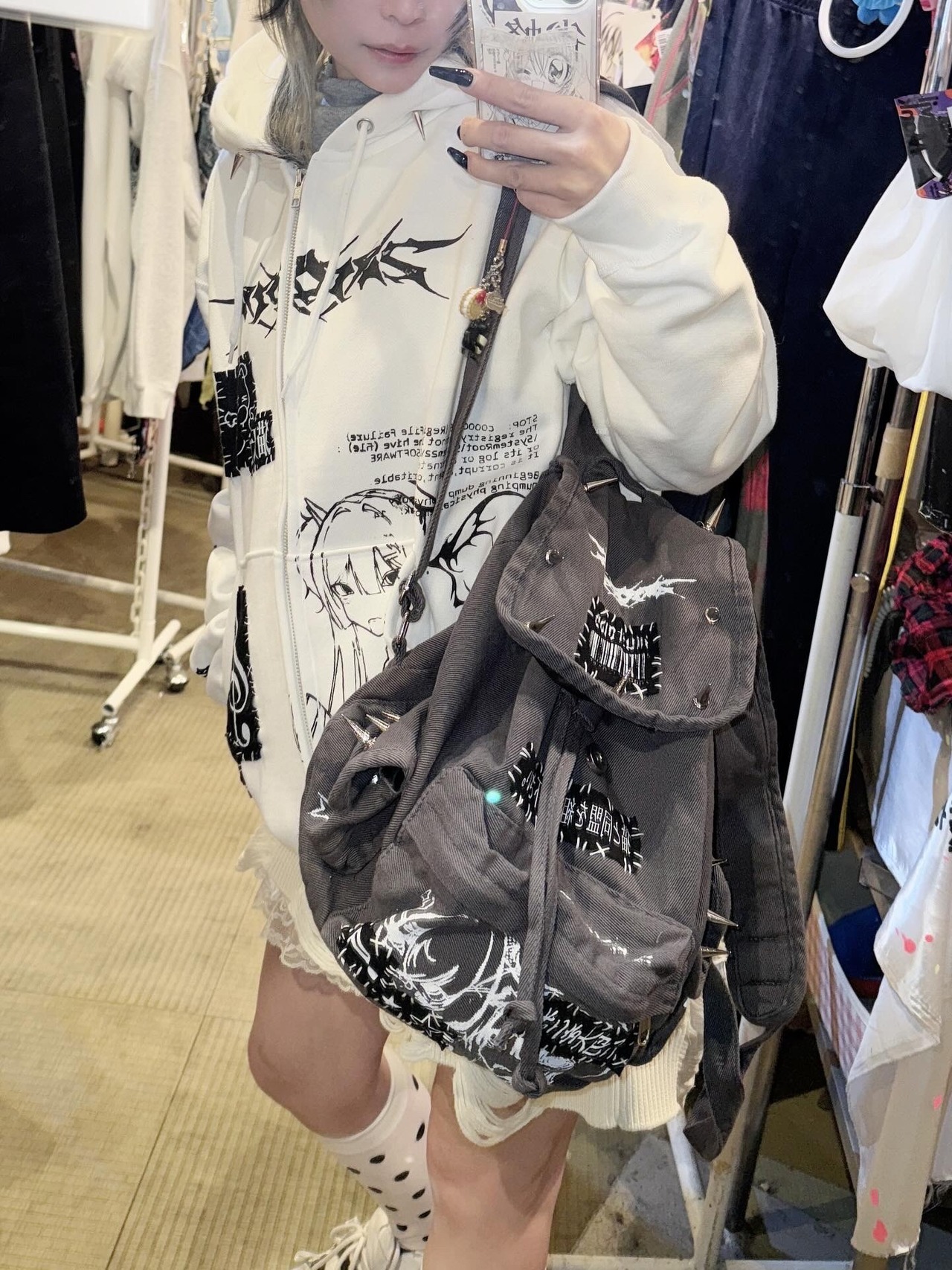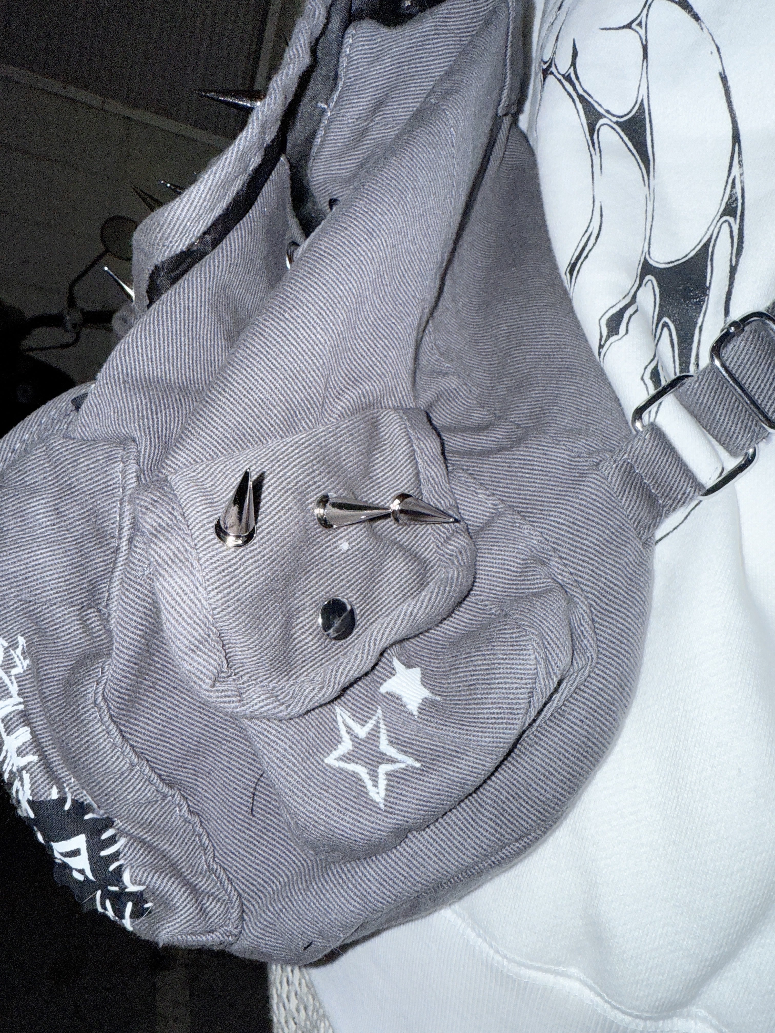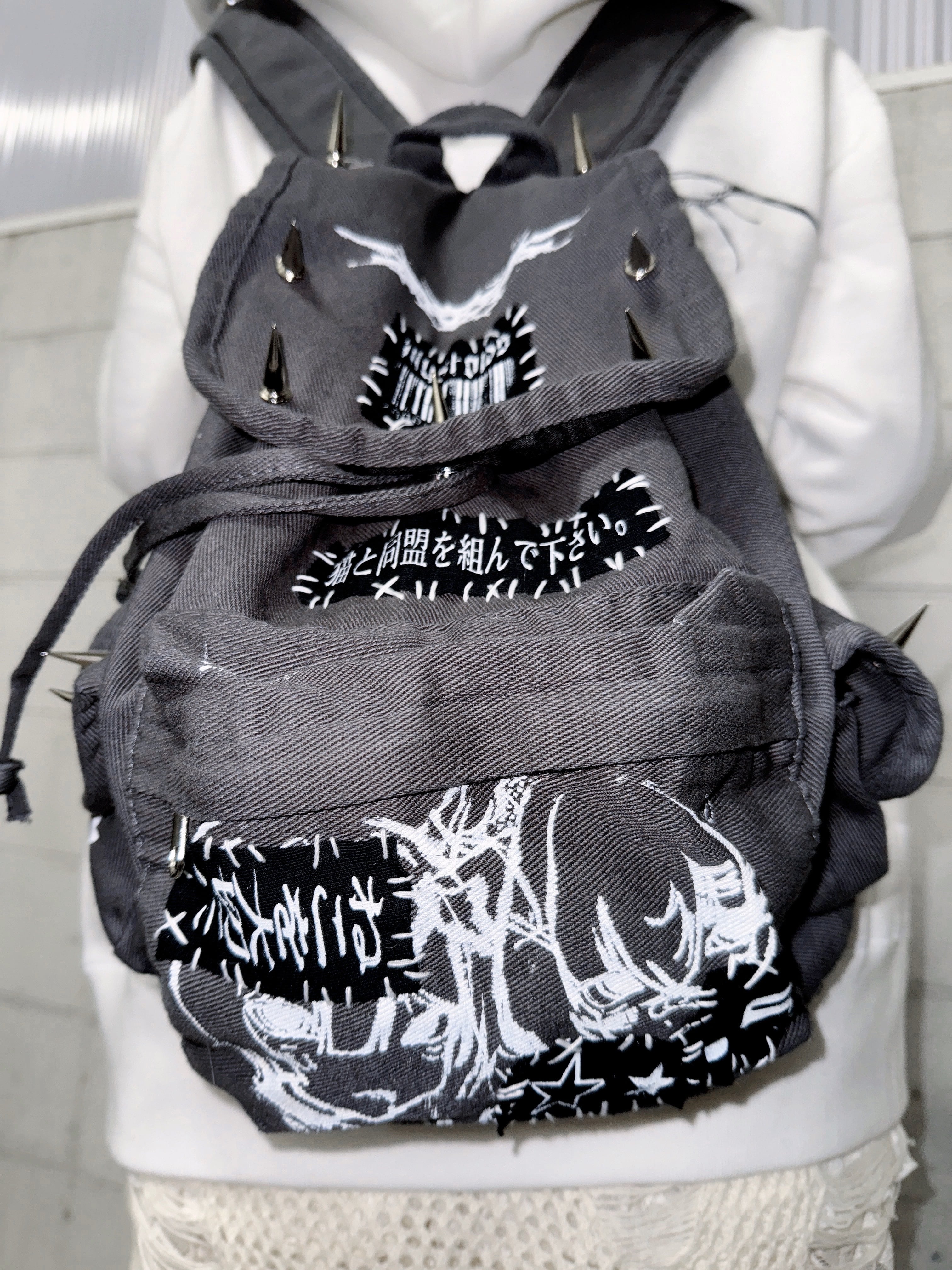1つずつ手刷りでプリント、手縫いでパッチワーク、棘をつけた特別なアイテム•*¨*•.¸¸♬︎