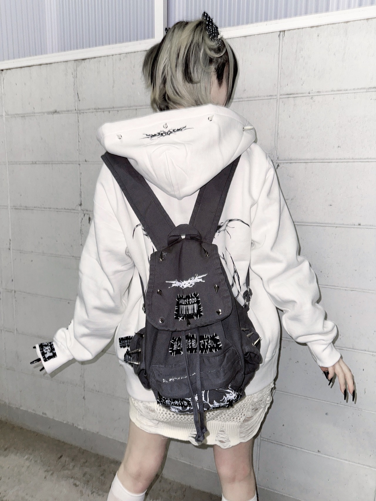 リュックを背負った時に左側に文字が見えるようにしましたฅ^•ω•^ฅ
