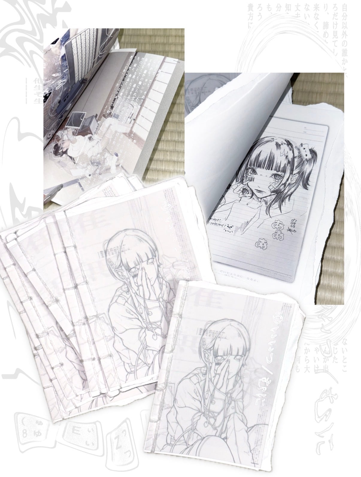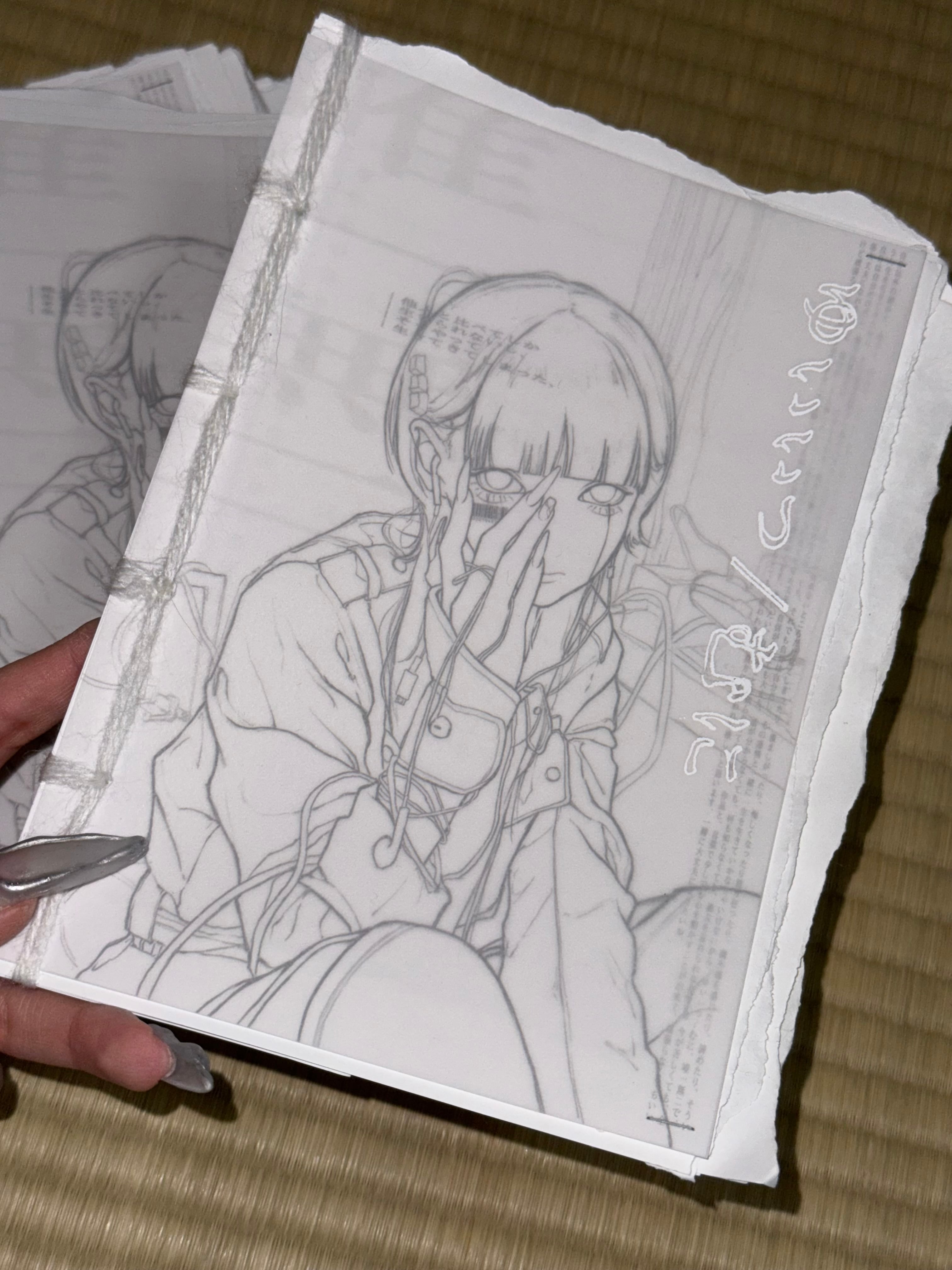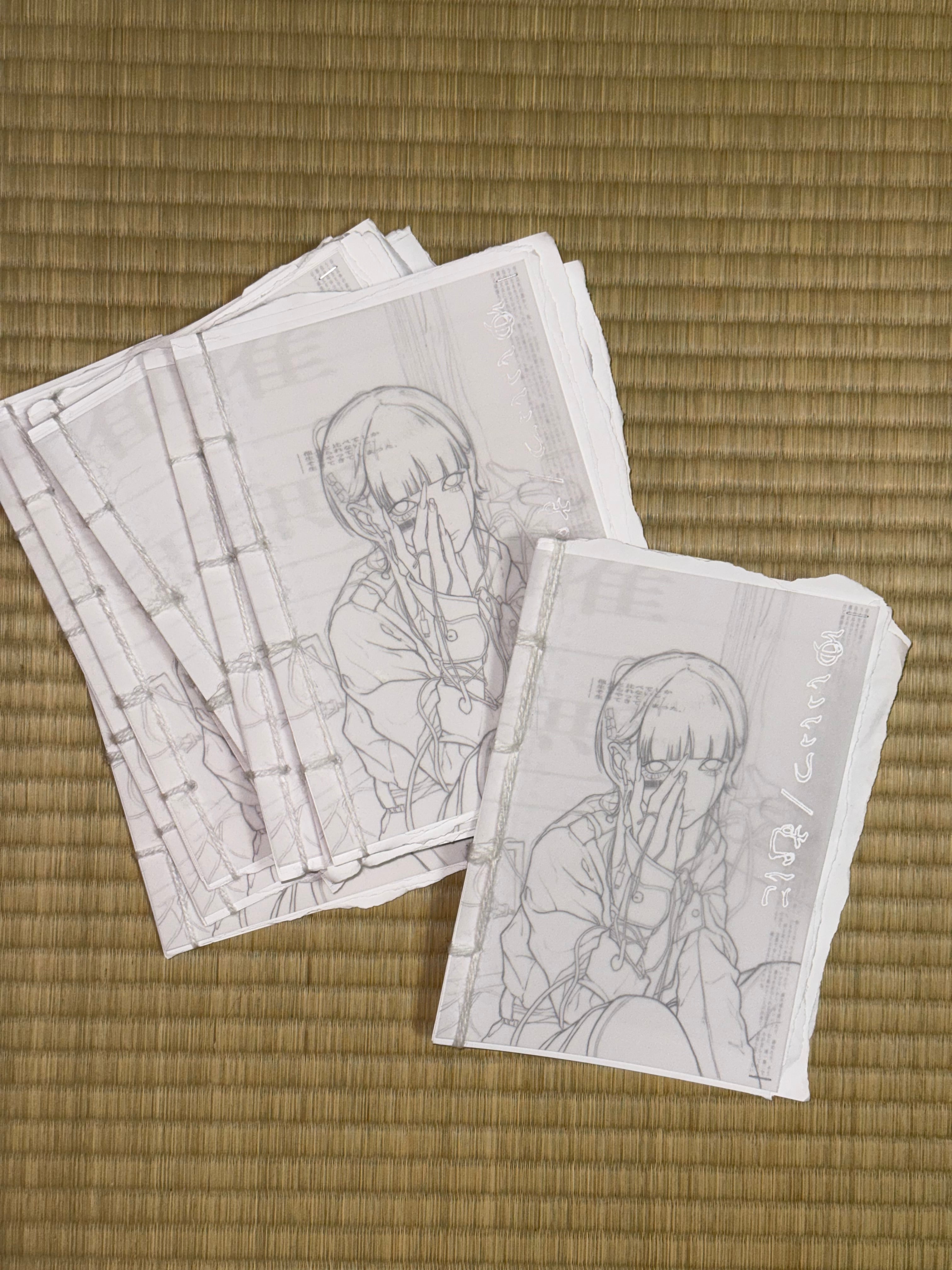 1枚ずつ和綴じで製本した一点物のイラスト集です.