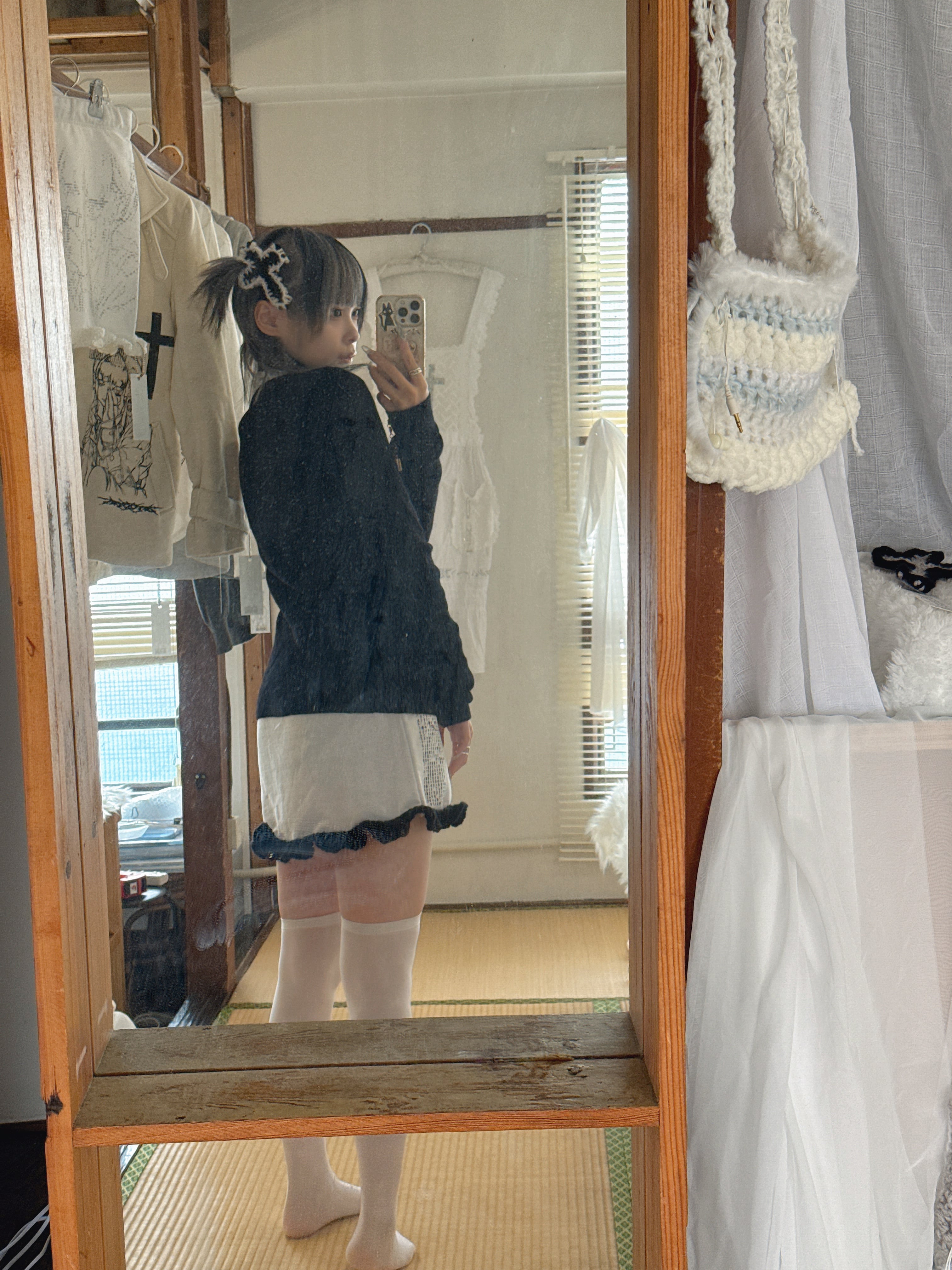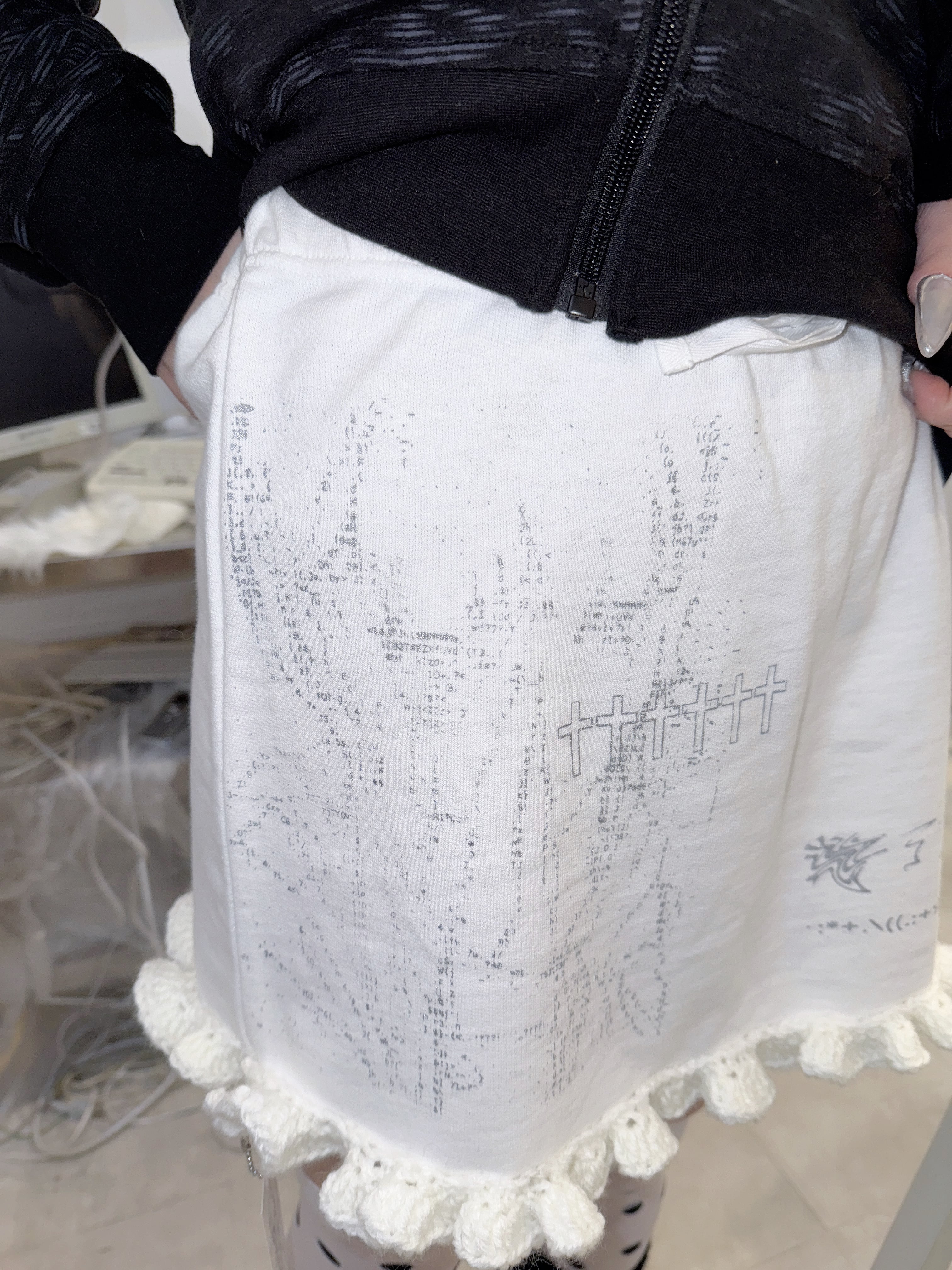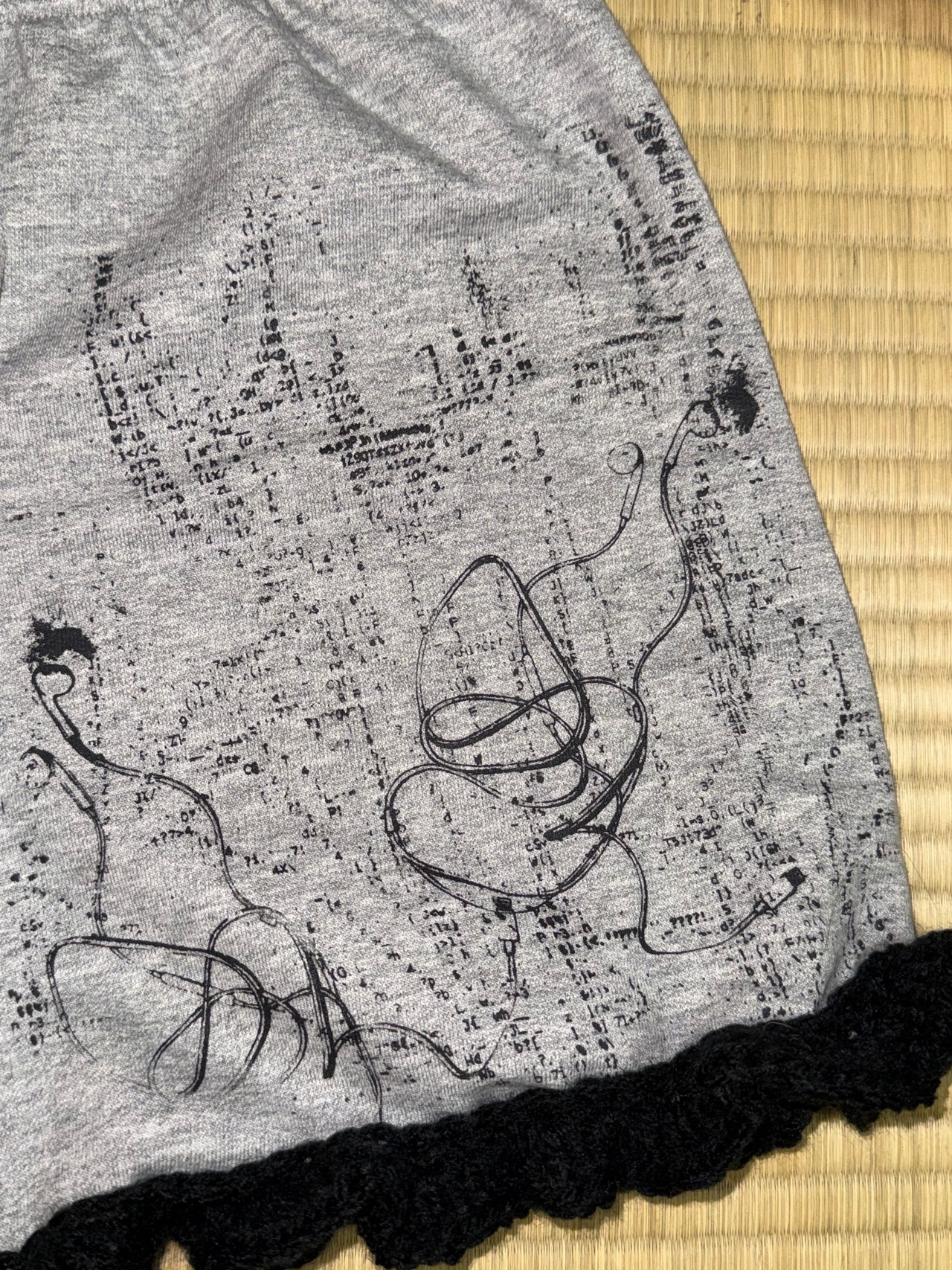 スウェットのすか~とにフリルの編物を縫いつけましたᴗ ̫ ᴗ