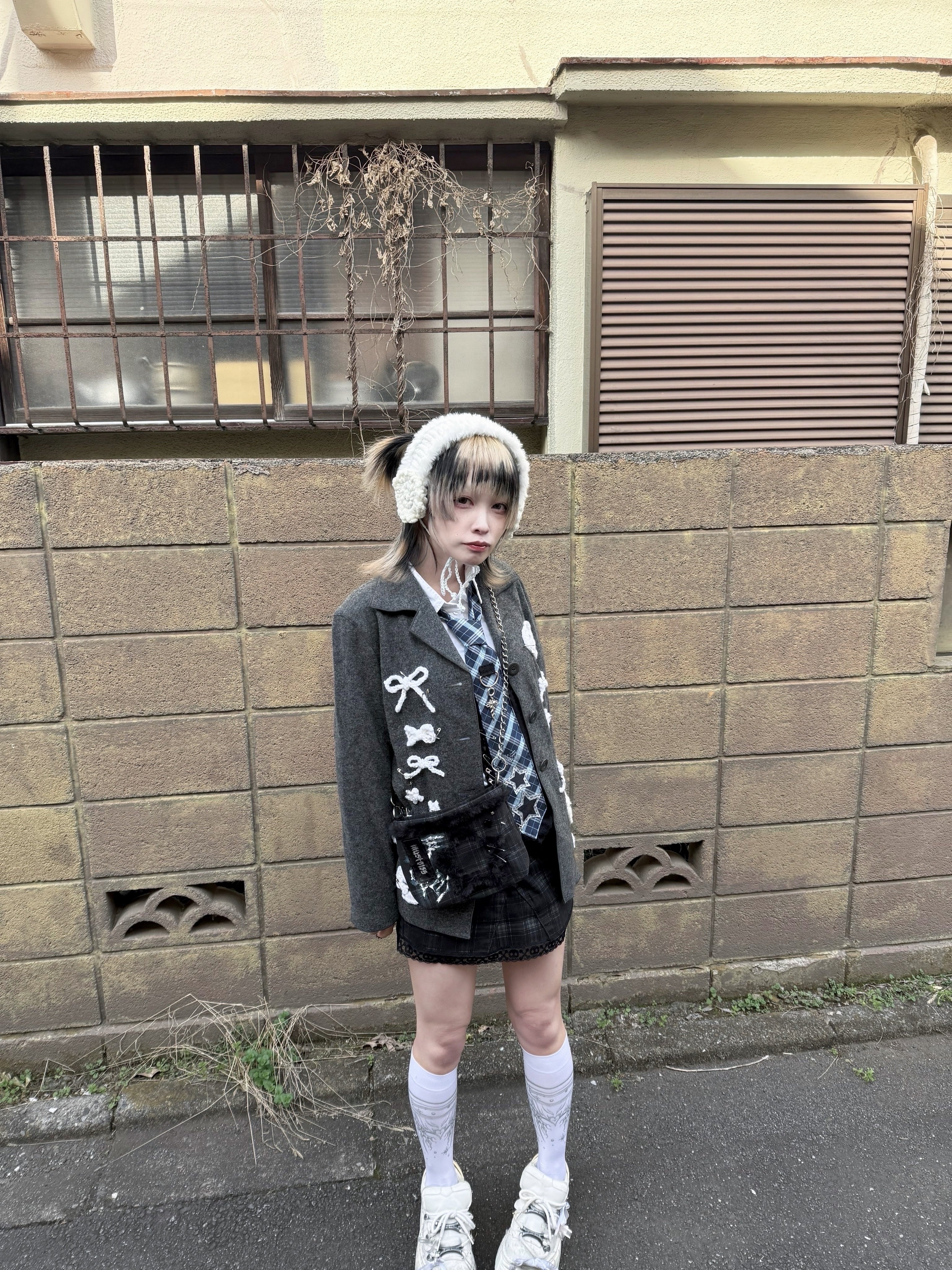 チェックの古着ネクタイに、お星さまを縫い付けたり、